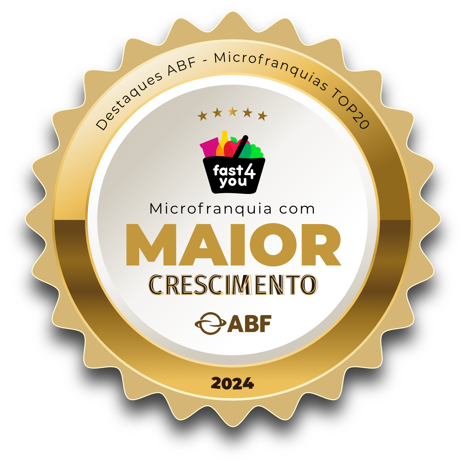 Reconhecimento à fast4you como a microfranquia de MAIOR CRESCIMENTO em 2024, destacada no ranking TOP20 da ABF – Associação Brasileira de Franchising.